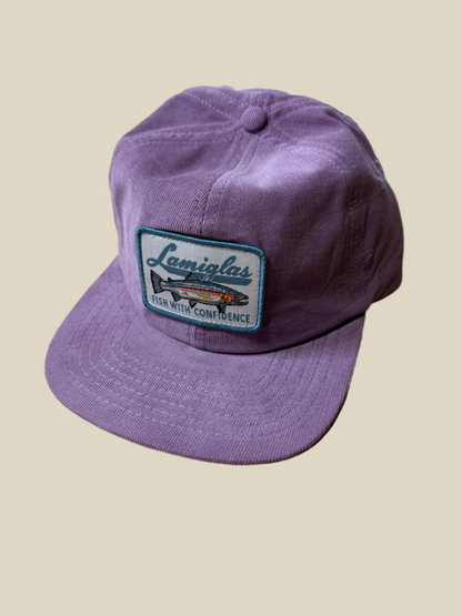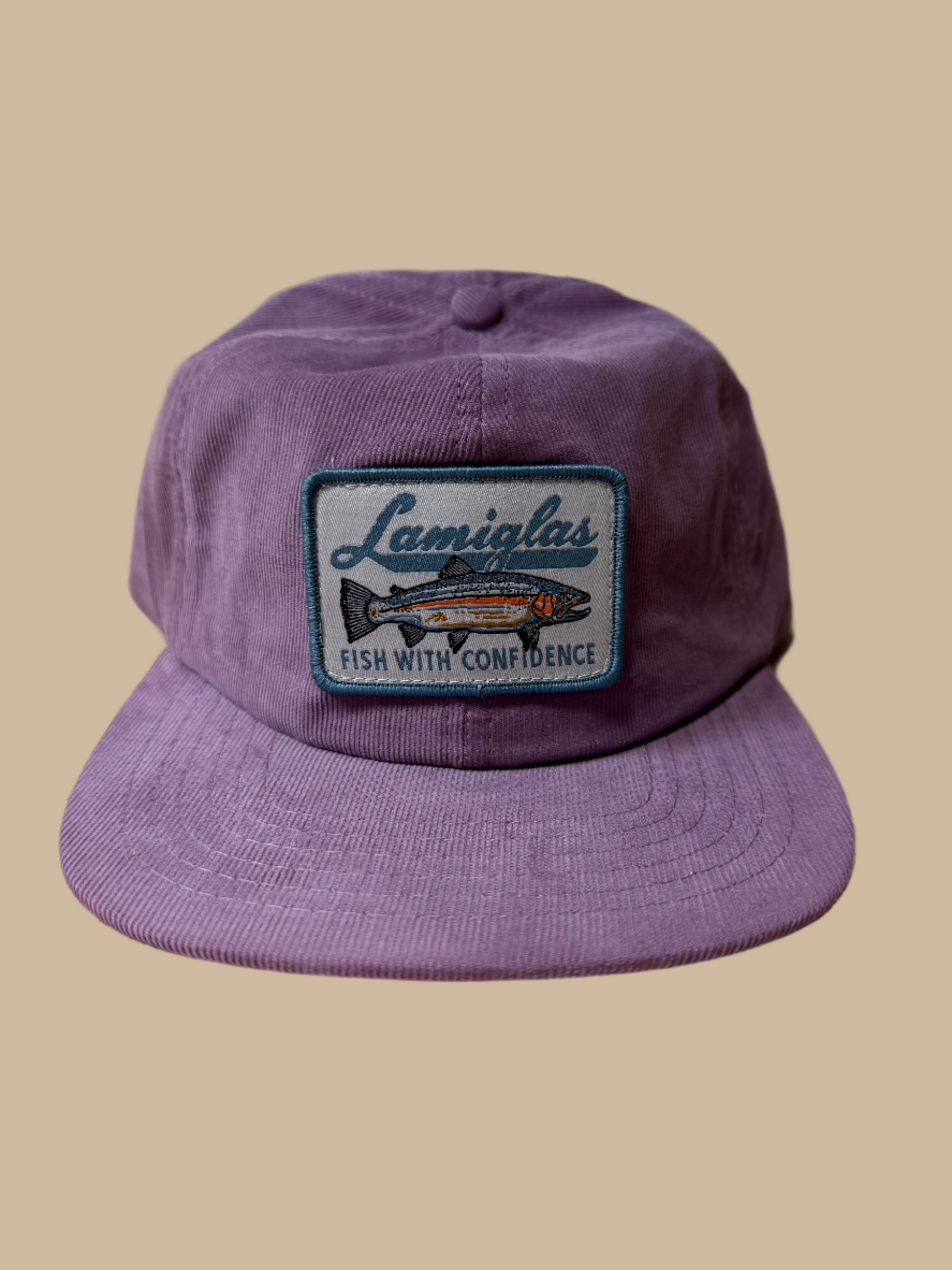 This deep purple corduroy hat features a soft, worn-in feel with a classic Lamiglas look that turns heads from the dock to the dive bar.